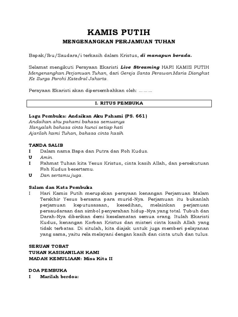 Doa Pada Saat Tuguran Kamis Putih / Pada kamis putih sendiri, biasanya terdapat sebuah ritual pembasuhan kaki yang dilakukan oleh pastur kepada umatnya.. Pada hari ini, dimulai tri hari suci yang diawali oleh kamis putih. Lonceng didentangkan saat gloria, sesudah itu tidak boleh lagi ada suara lonceng hingga malam paskah. Tuguran kamis putih bersama rm. Posted by liturgiekaristi on march 8, 2011. Karena puasa senin kamis termasuk pada ibadah maka niat tidak boleh di tinggalkan apalagi dengan sengaja, sebab dalam ibadah niat adalah ruhnya serta dalam berpuasa termasuk pada rukun yang harus di penuhi.